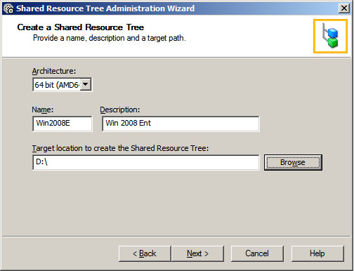 Add name, description , Architecture and destination location where to save shared resource tree.