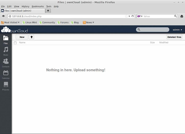 Now you can start upload a files via browser, alternately you can download ownCloud client to upload the files.